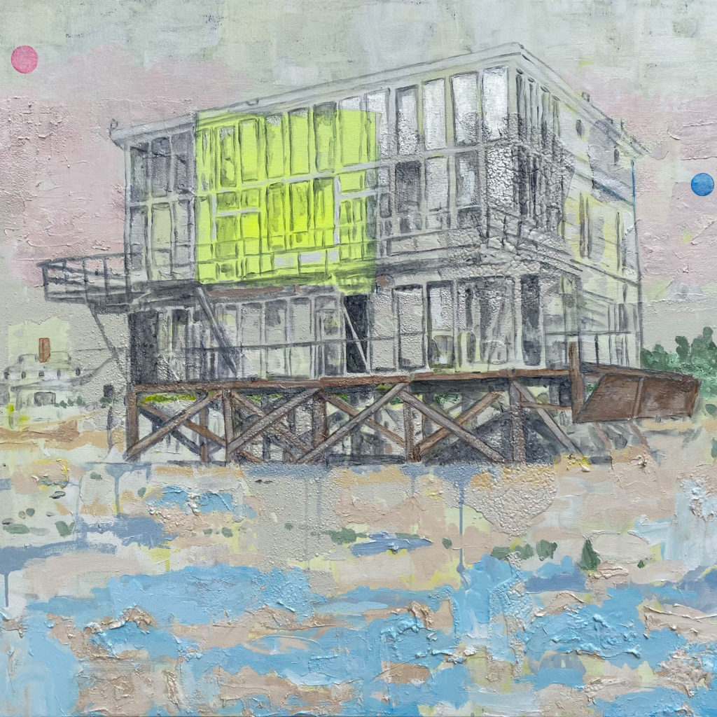 In Alabama Contemporary’s current pop-up exhibition Homestead Extinction at AC Satellite in downtown, artist Tony Rodrigues creates a glittery and colorful work that meditates on a post-unsolved crisis view of the American Dream.