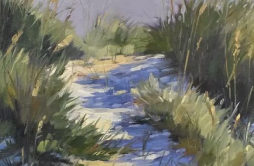 In this class, students will gather impressions of the natural world with sketches, color mixing, photos and journal pages. Then we will head indoors with all this information and create at least one finished painting that is filled with the true colors and feelings of the outdoors. The result will be a painting done with heightened awareness of the scene, but without the pressures of painting outdoors the entire time. All students receive my new workbook, “Impressions from the Field“.