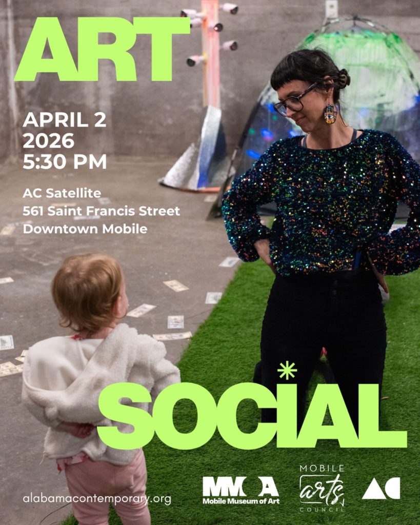 Our 3 Mobile arts organizations – Mobile Arts Council, Alabama Contemporary, and Mobile Museum of Art – are together again on April 2nd from 5:30 to 7 p.m. for our ArtSocial networking series. We’ll head over to ACAC Satellite this time to show off Homestead Extinction, a pop-up artist takeover by Tony Rodrigues, discuss teaching opportunities, their upcoming education pavilion, and all the exciting possibilities for creative gathering in this new experimental studio space. Enjoy drinks by donation, courtesy of our friends at Braided River, conversation with your fellow artists and arts lovers, and check out the progress!