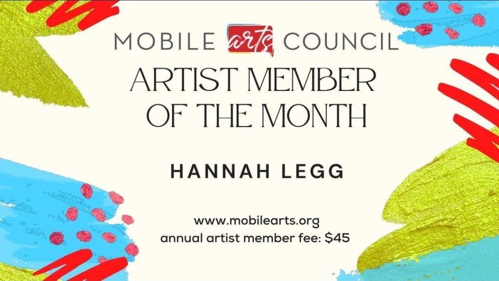 Congratulations to our October Artist Member of the Month Hannah Legg