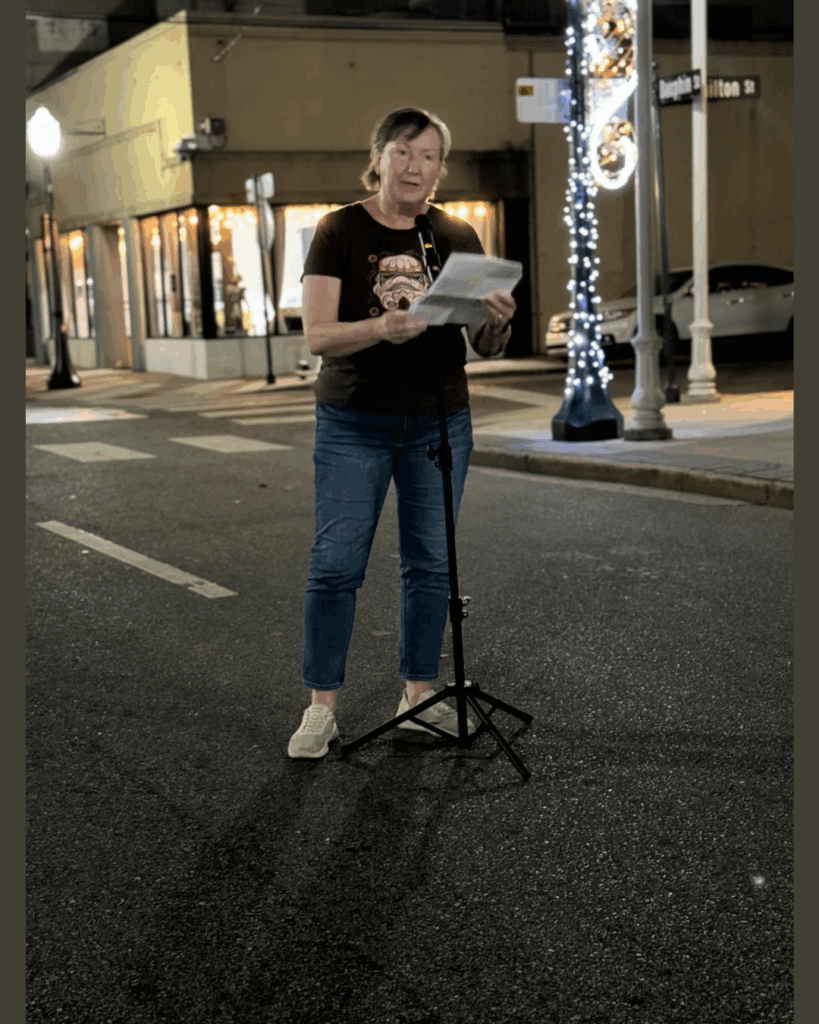 Now, her attention is turning back to creative writing. “The only thing I’m really interested in writing now is poetry,” she says. She’s led several sessions of the Mobile Arts Council’s new monthly poetry workshops, read during an Artwalk poetry session in November 2024, and published three poems in the recently released Emerald Coast Review.
