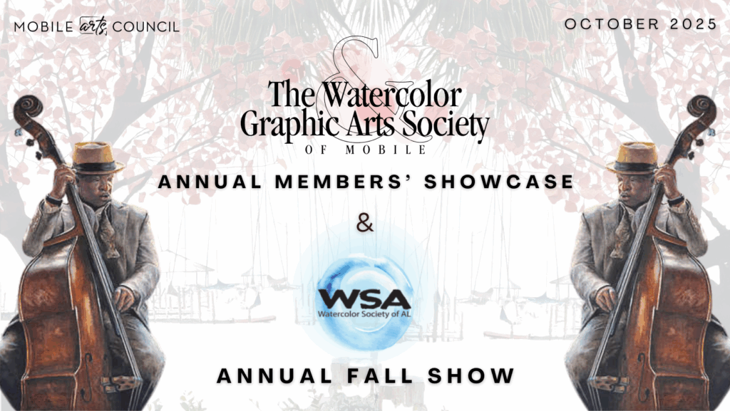 The Mobile Arts Council (MAC) is proud to present two inspiring exhibitions this October: Watercolor Society of Alabama’s Annual Fall Show & The Watercolor & Graphic Arts Society of Mobile’s Annual Members’ Showcase.