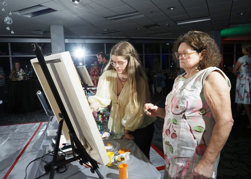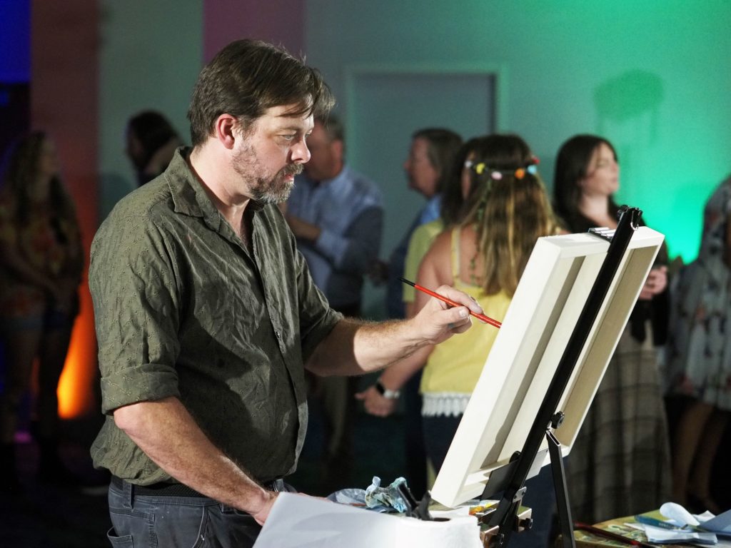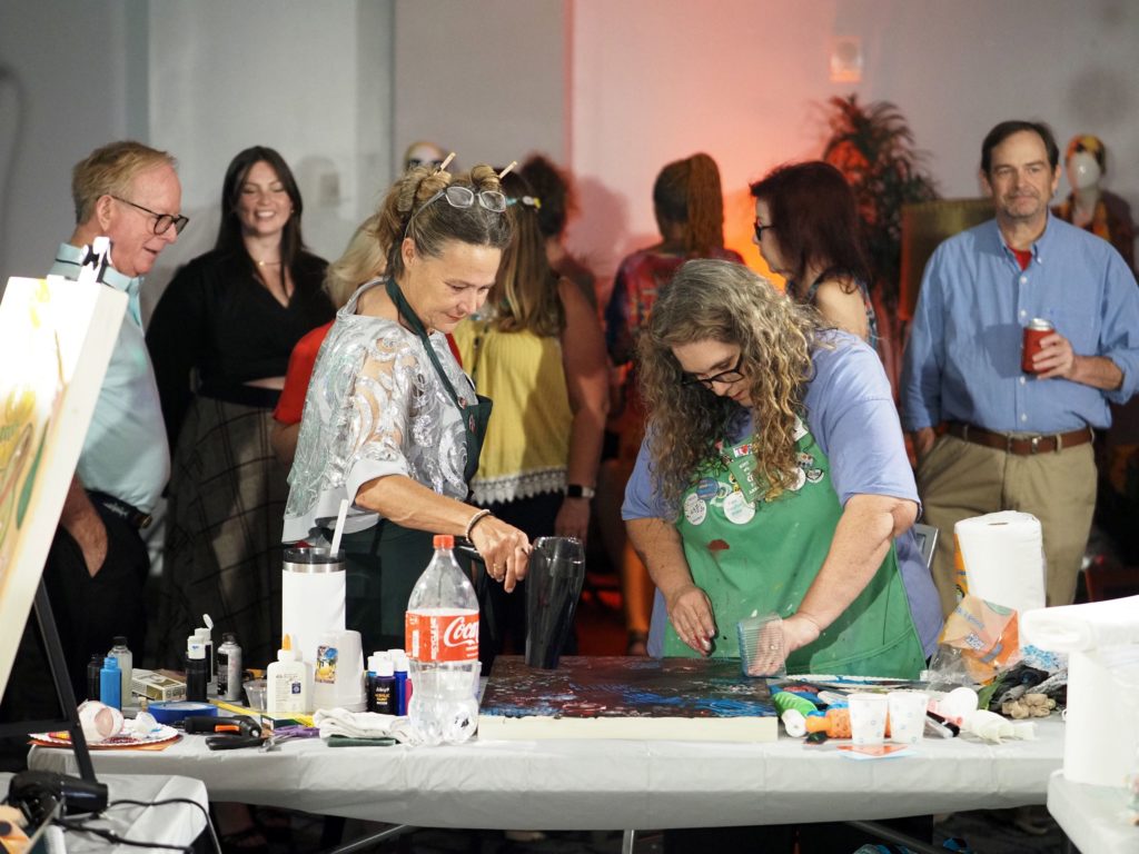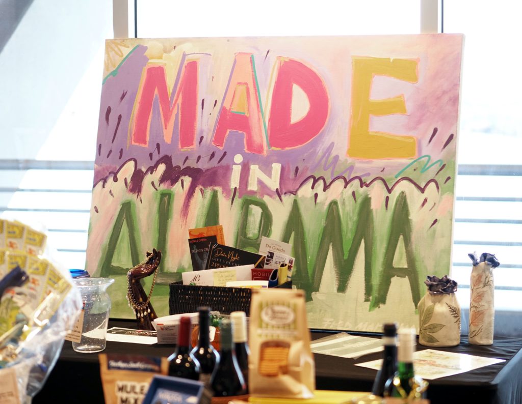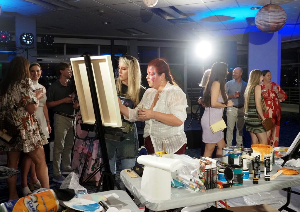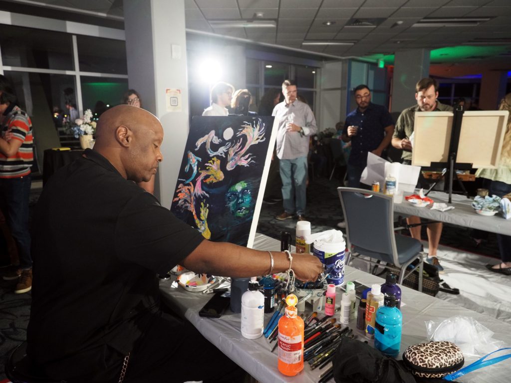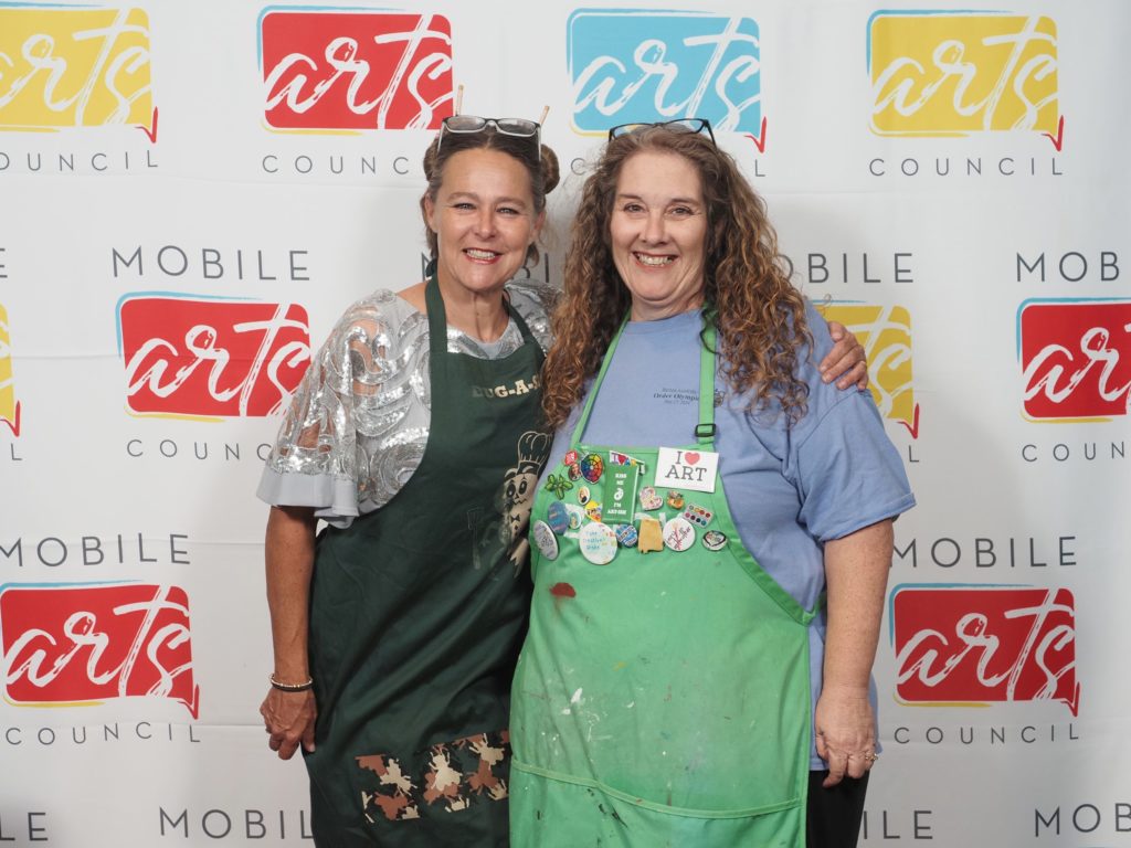 During the competition, attendees enjoyed music by Ryan Balthrop, a silent auction, and catering by Heroes and the Royal Scam. Our evening was emceed by the only-and-only Darwin Singleton. The one-of-a-kind artworks created at the event were auctioned off live, and the artist with the highest bid was Mayssam Iskandar – whose piece sold for $700. Collectively, these artists alone raised $2,700 towards our fundraising total of $16,000+! All funds raised will go towards MAC’s mission: to enrich the quality of life in the Mobile area through increasing accessibility to the arts and promoting a vibrant cultural community.