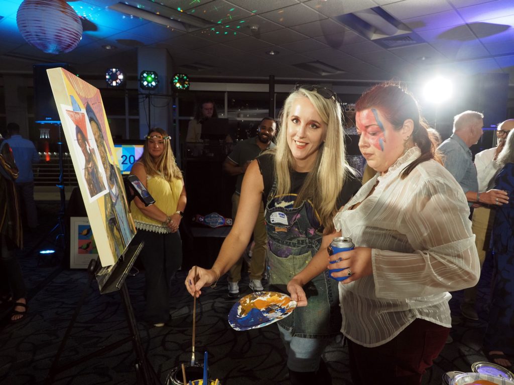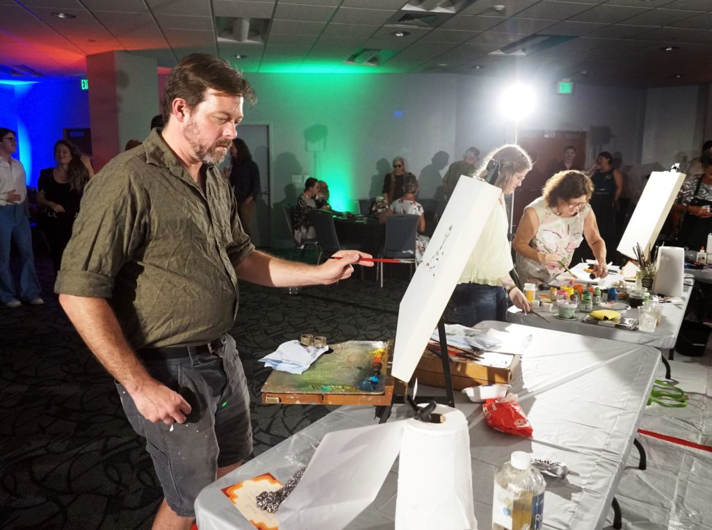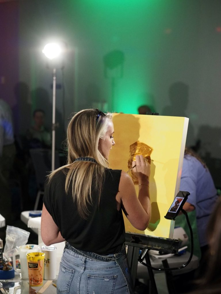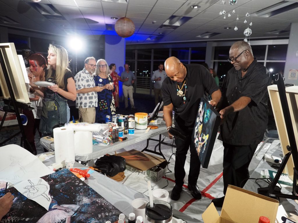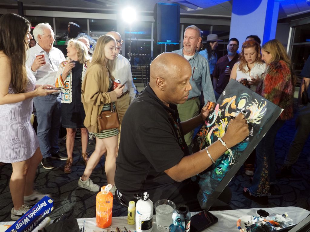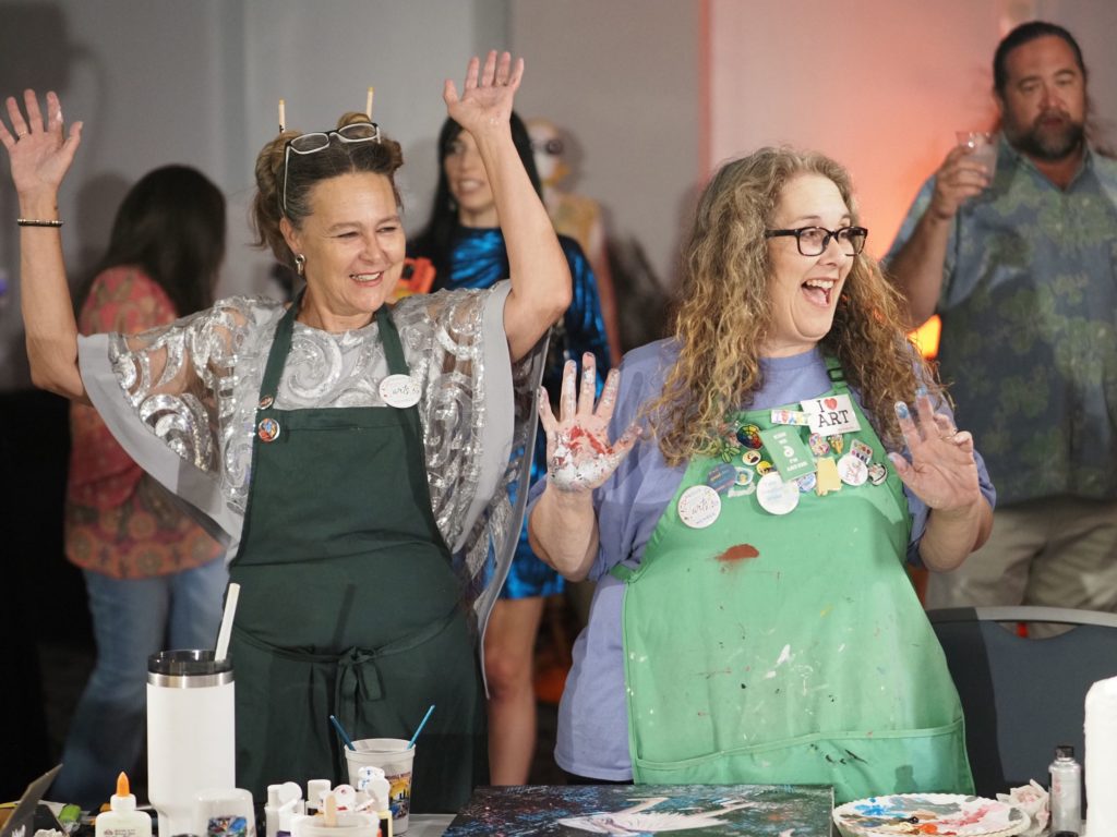 During the competition, attendees enjoyed music by Ryan Balthrop, a silent auction, and catering by Heroes and the Royal Scam. Our evening was emceed by the only-and-only Darwin Singleton. The one-of-a-kind artworks created at the event were auctioned off live, and the artist with the highest bid was Mayssam Iskandar – whose piece sold for $700. Collectively, these artists alone raised $2,700 towards our fundraising total of $16,000+! All funds raised will go towards MAC’s mission: to enrich the quality of life in the Mobile area through increasing accessibility to the arts and promoting a vibrant cultural community.