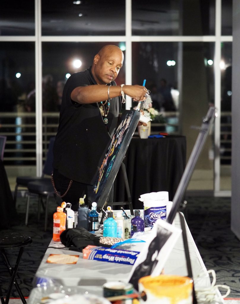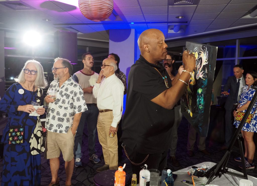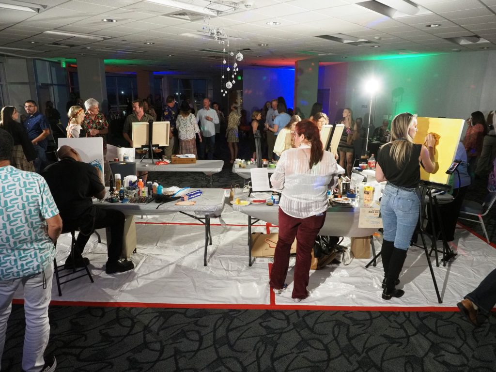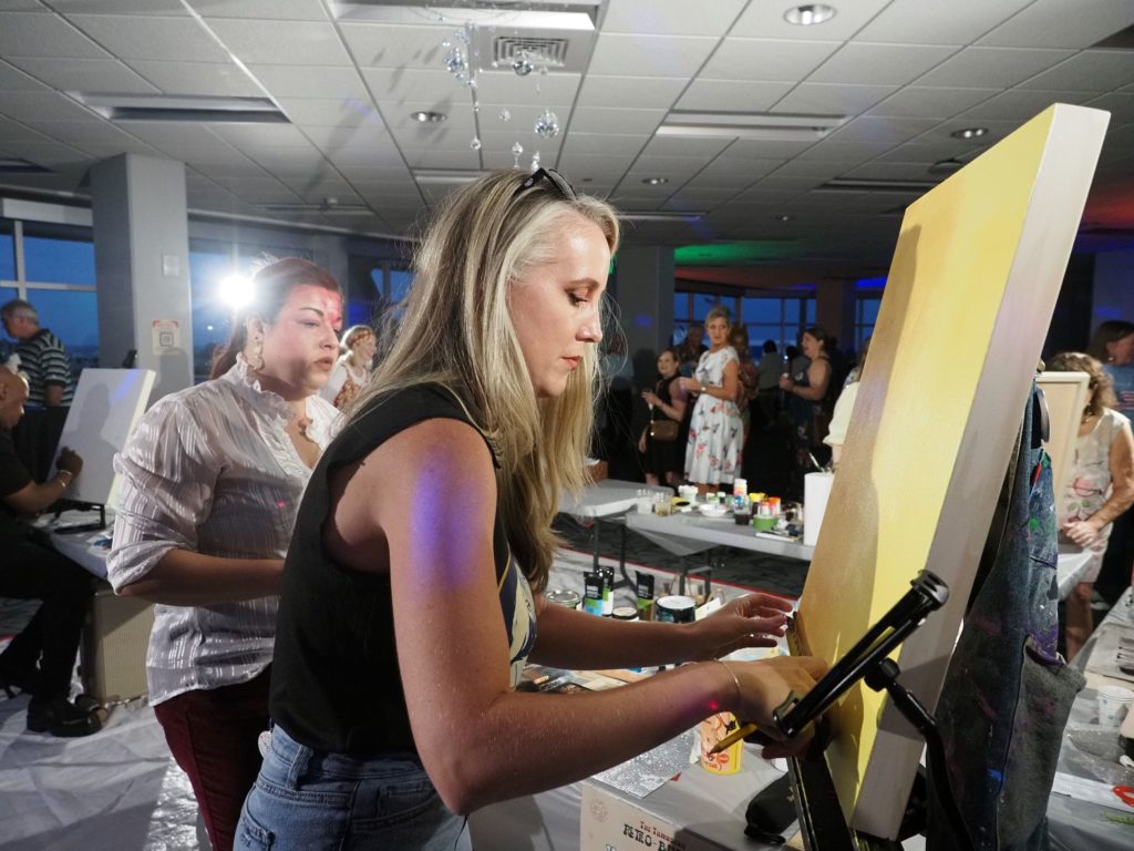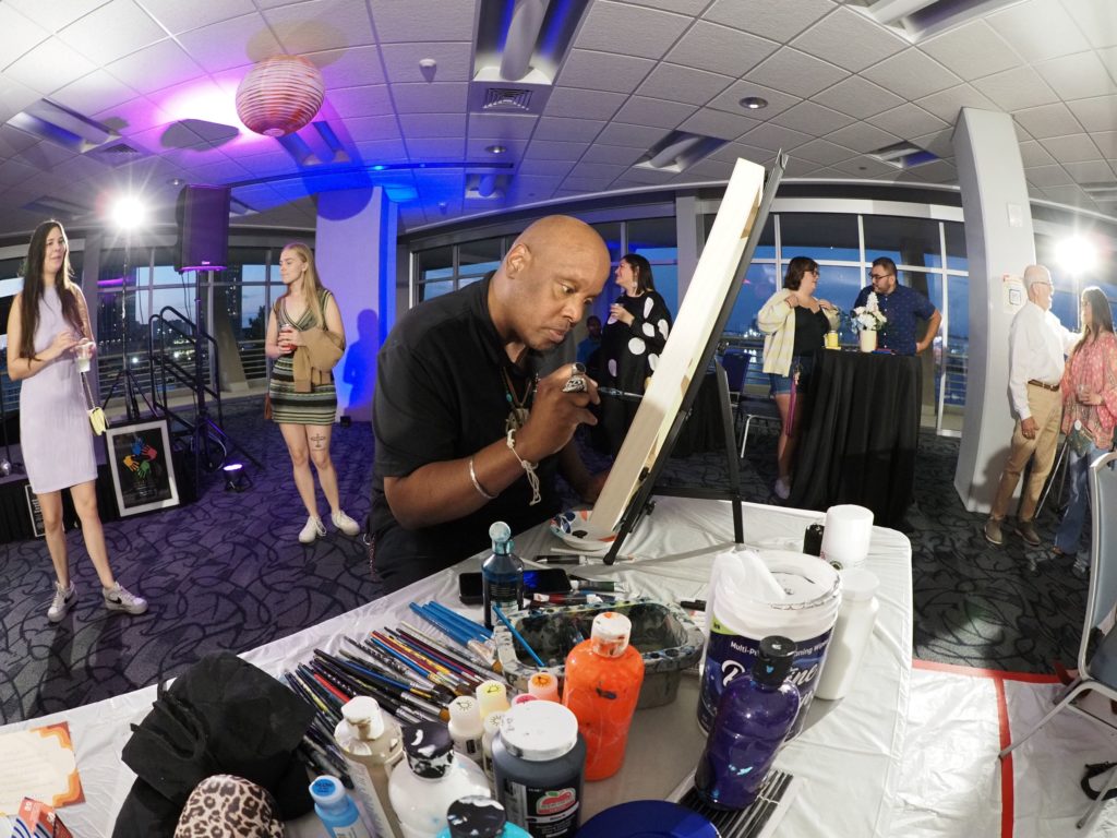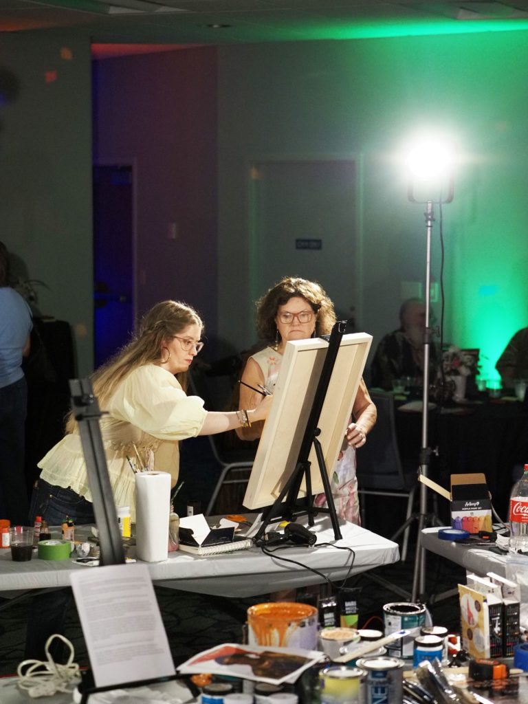 During the competition, attendees enjoyed music by Ryan Balthrop, a silent auction, and catering by Heroes and the Royal Scam. Our evening was emceed by the only-and-only Darwin Singleton. The one-of-a-kind artworks created at the event were auctioned off live, and the artist with the highest bid was Mayssam Iskandar – whose piece sold for $700. Collectively, these artists alone raised $2,700 towards our fundraising total of $16,000+! All funds raised will go towards MAC’s mission: to enrich the quality of life in the Mobile area through increasing accessibility to the arts and promoting a vibrant cultural community.