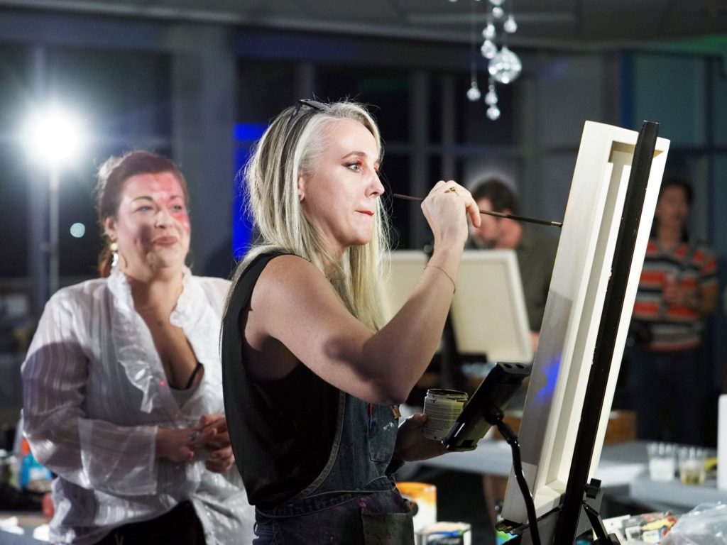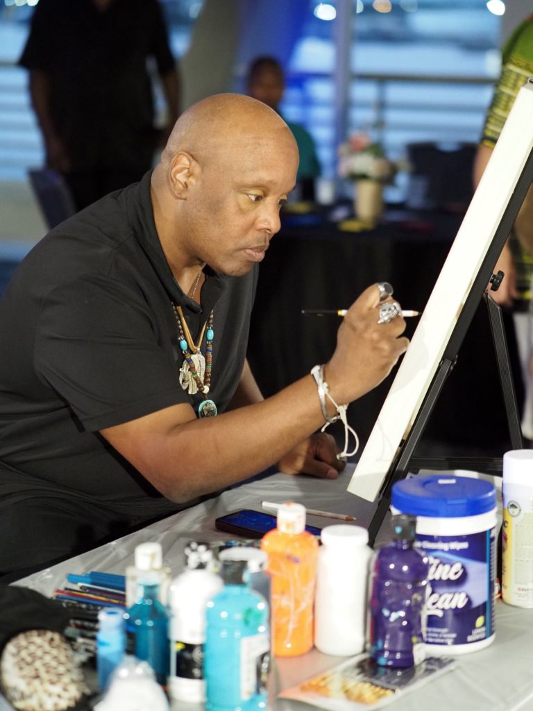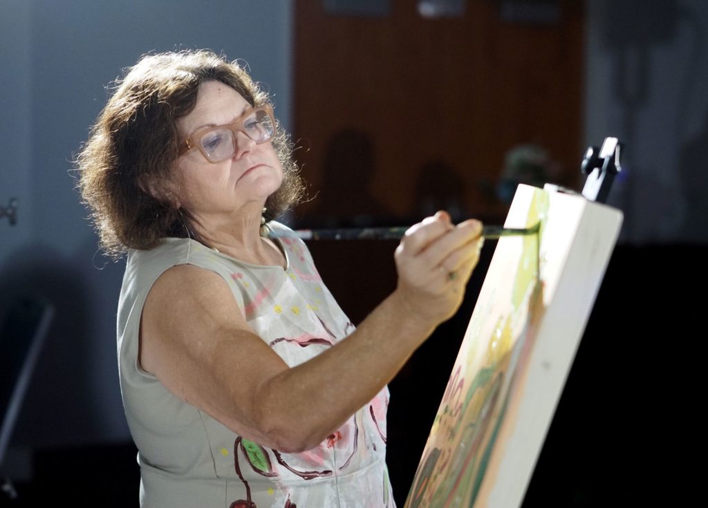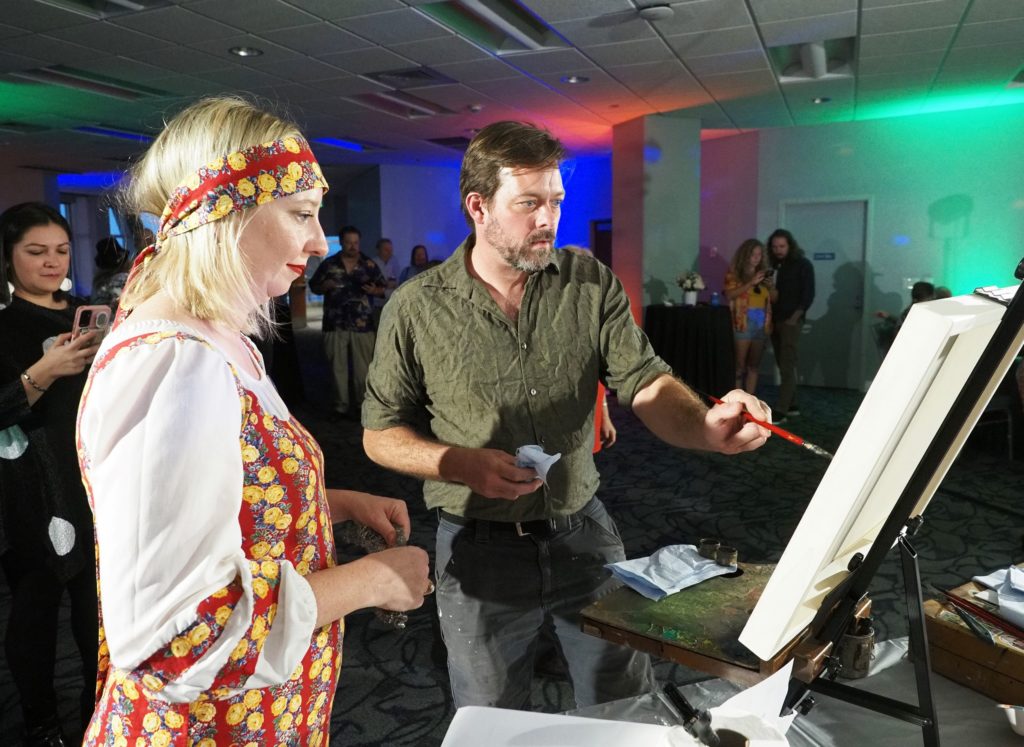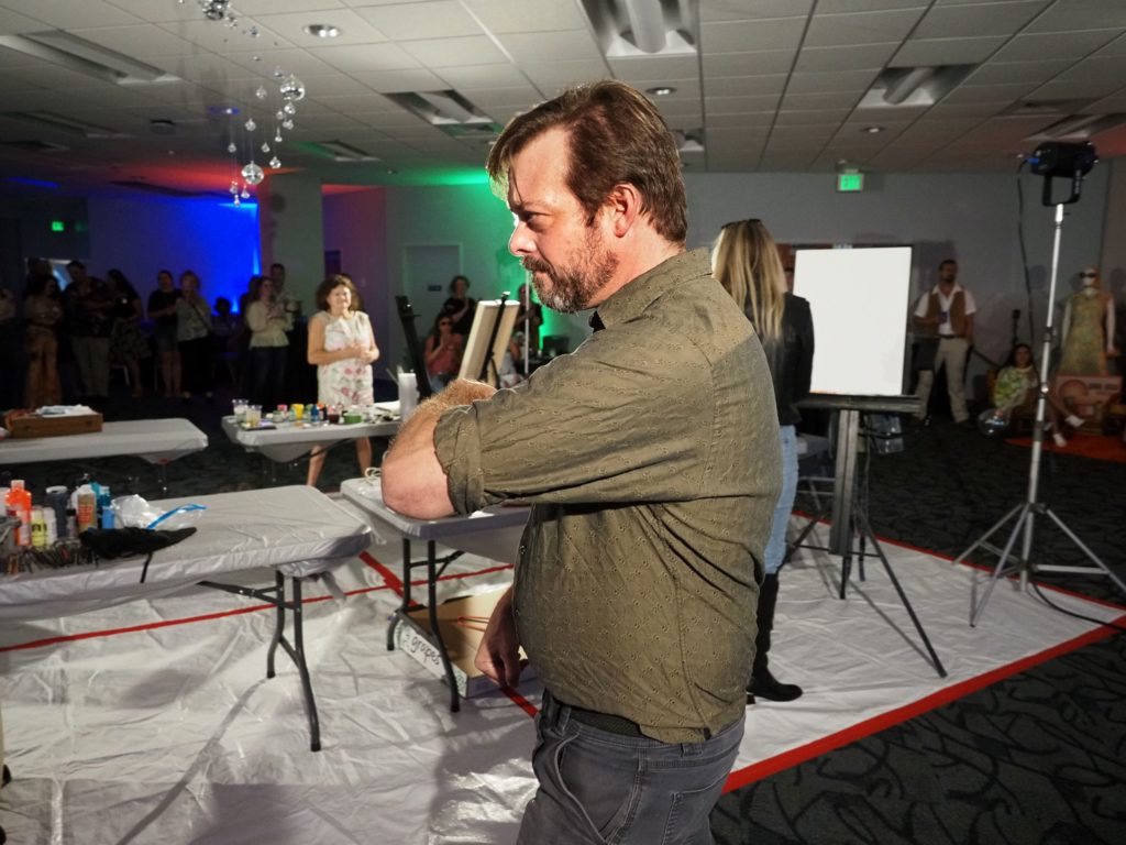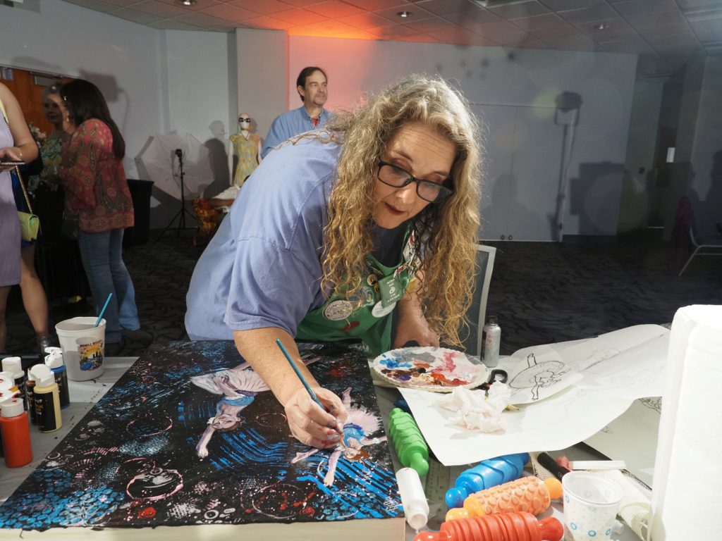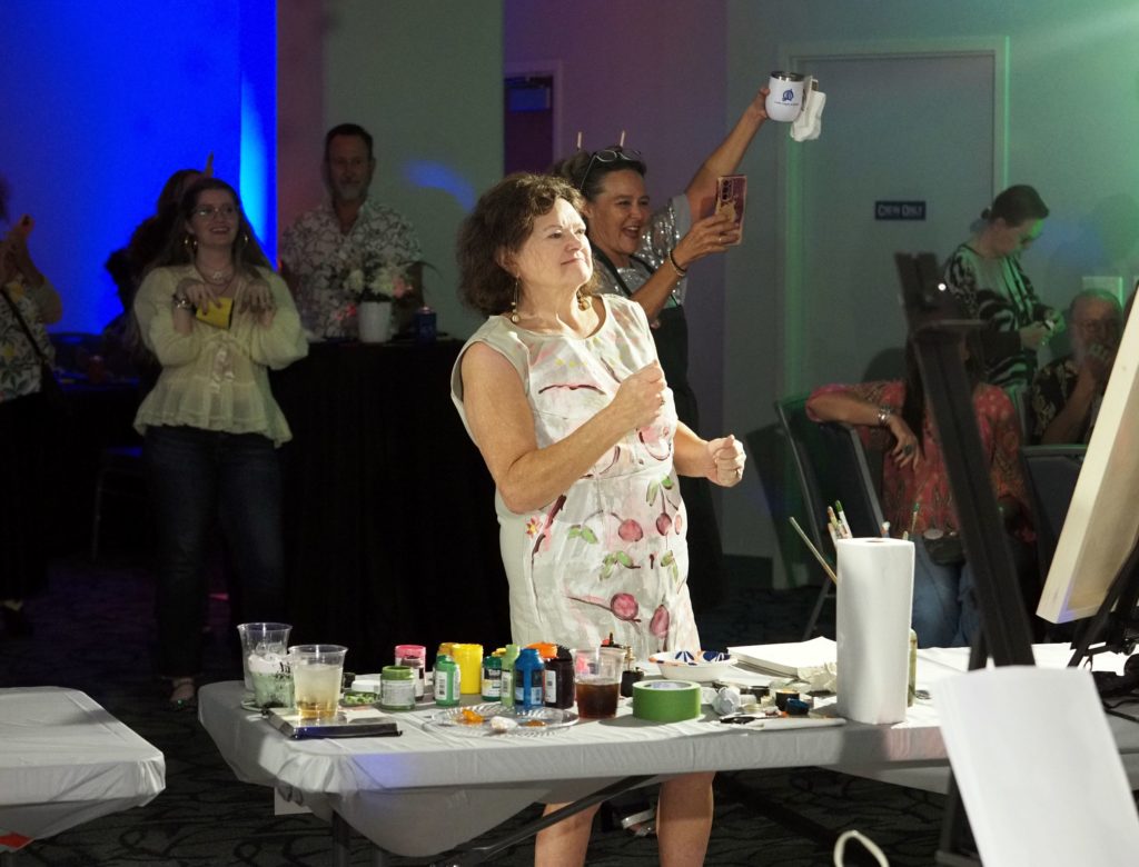 During the competition, attendees enjoyed music by Ryan Balthrop, a silent auction, and catering by Heroes and the Royal Scam. Our evening was emceed by the only-and-only Darwin Singleton. The one-of-a-kind artworks created at the event were auctioned off live, and the artist with the highest bid was Mayssam Iskandar – whose piece sold for $700. Collectively, these artists alone raised $2,700 towards our fundraising total of $16,000+! All funds raised will go towards MAC’s mission: to enrich the quality of life in the Mobile area through increasing accessibility to the arts and promoting a vibrant cultural community.