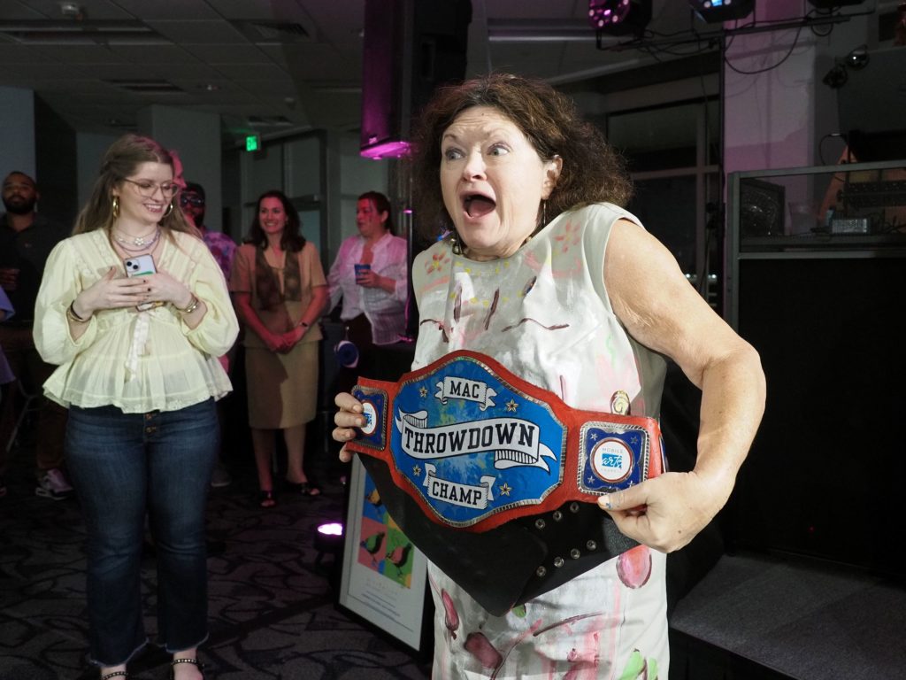 This year, we threw back in honor of MAC’s 70th anniversary — with a special “retro-bution” edition of The Throwdown! Past competitors returned for another shot at victory, and they knocked it out of the park. The 2025 competitors were Christy LeGros (returning champion), Mary Elizabeth Kimbrough (2019 competitor), Kathleen Kirk Stoves (2020 competitor), Christopher Murray (2022 competitor), and Ty Tover (2023 competitor).